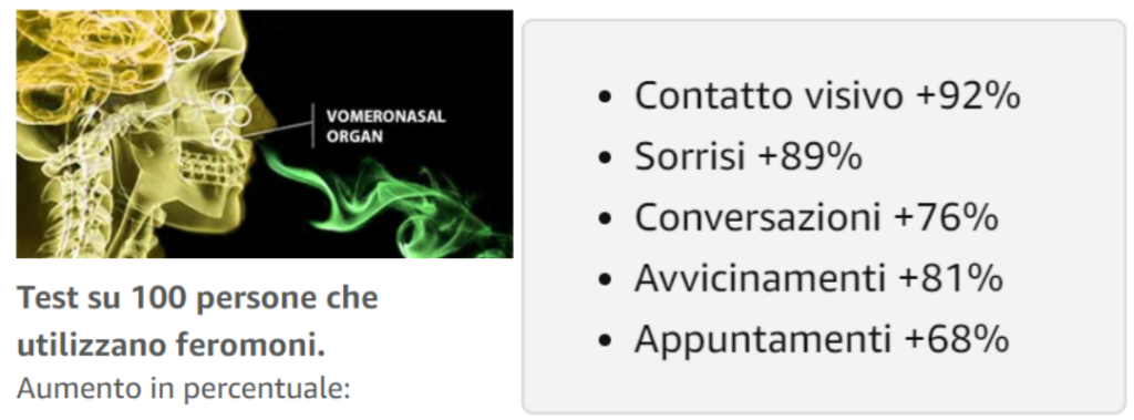 FEROMONI PER SEDURRE: i Feromoni, sostanze chimiche emesse naturalmente, influiscono sull’attrazione. Vengono captati dall’organo Vomeronasale (VNO) che è situato nelle cavità nasali e che, come già nel 1703 era stato scoperto da alcuni scienziati, ne è il ricettore.